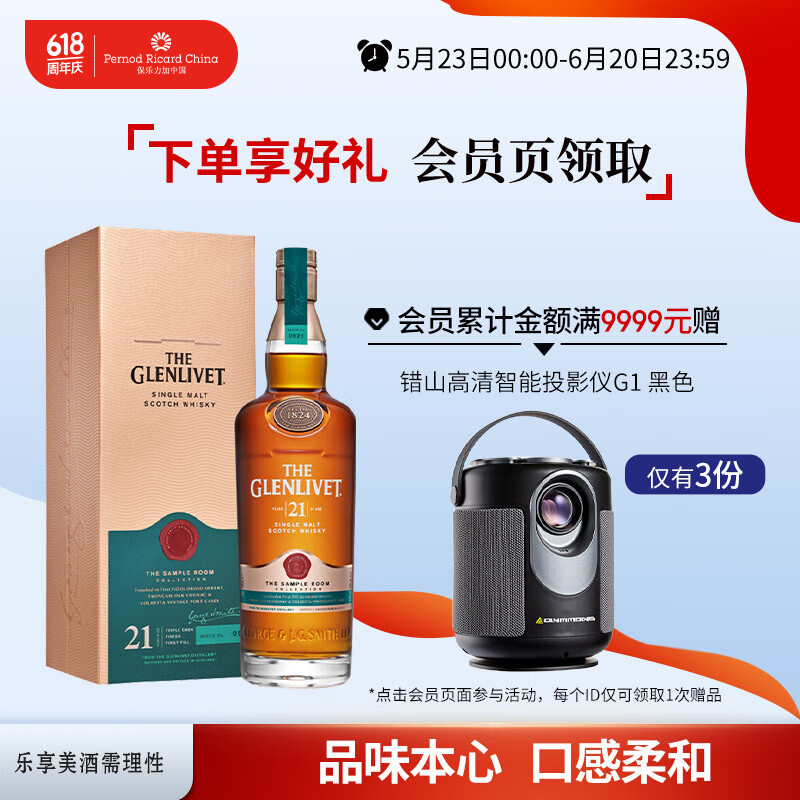 格兰威特(Glenlivet)21年 陈酿单一麦芽苏格兰威士忌700ml价格:1949.00元!