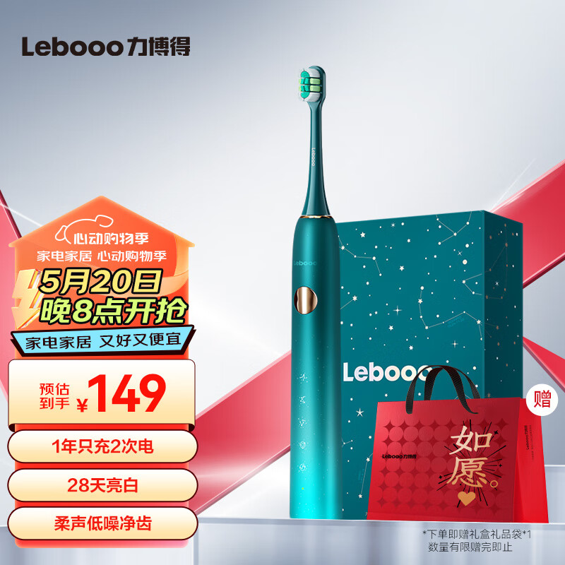 力博得(Lebooo)电动牙刷智能震动全自动感应式充电 节日礼物成人520情侣款星空礼盒 星芒 星辰绿价格:179.00元!