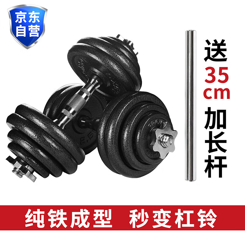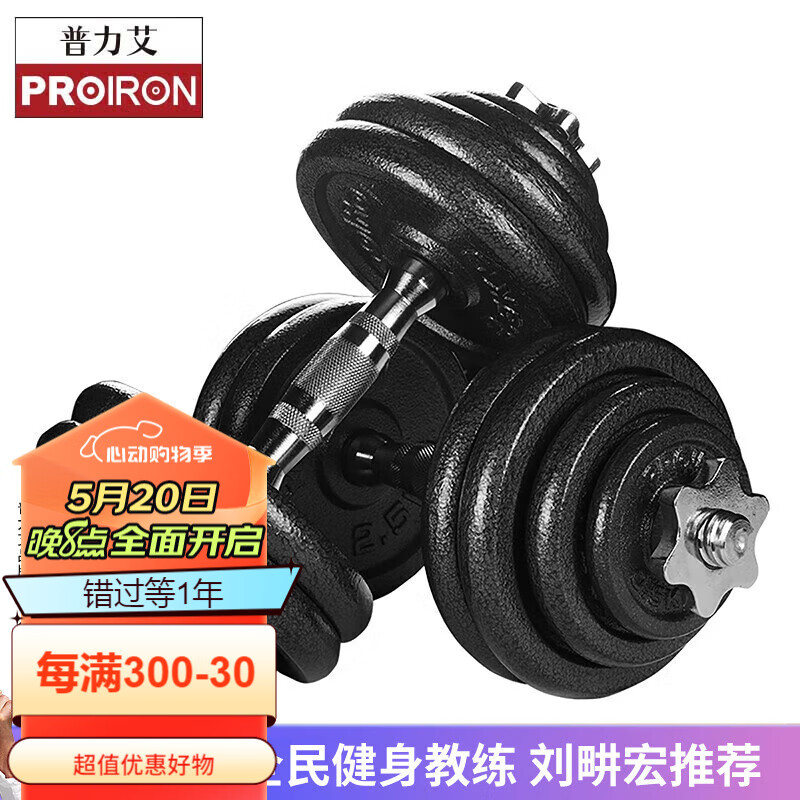 PROIRON普力艾 纯铁哑铃男可调节30KG男女健身哑铃杠铃+配35厘米连接杆价格:439.00元!