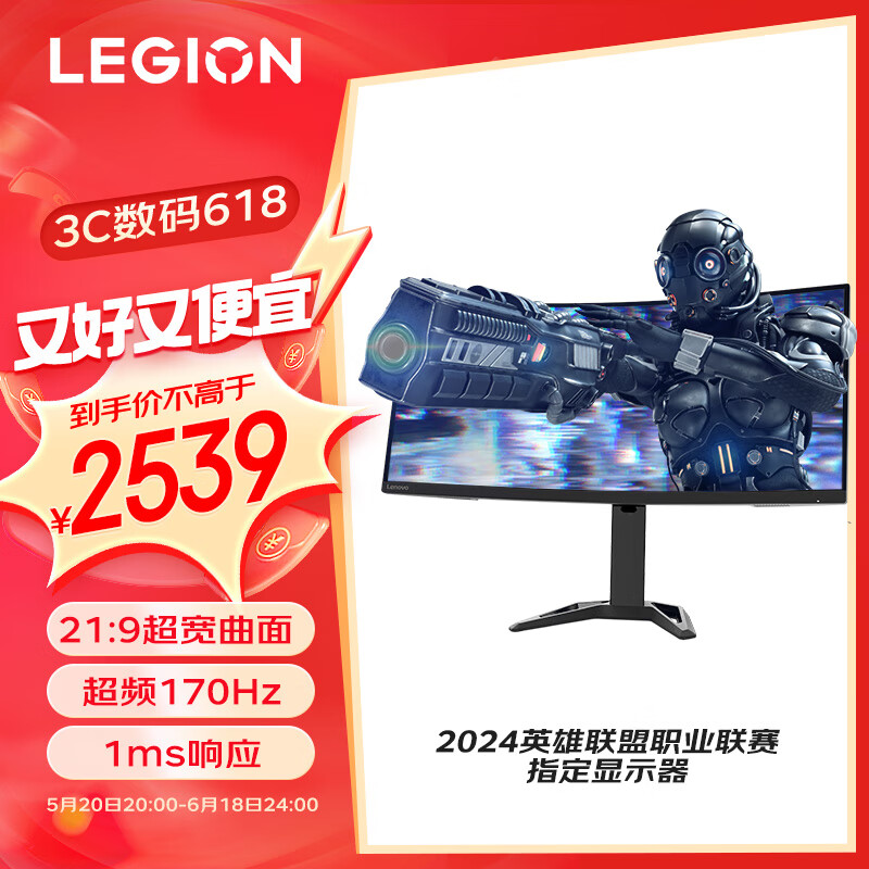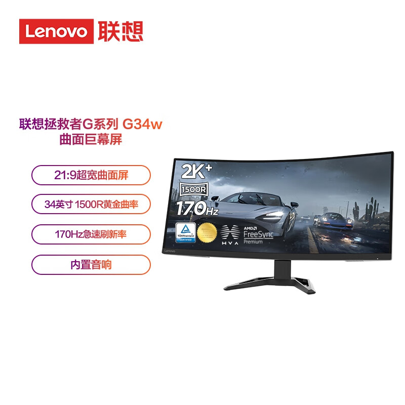 联想(Lenovo)拯救者34英寸宽屏2K超频170Hz低蓝光FreeSync 1ms HDR10升降俯仰音箱电竞显示器G34w-30价格:2539.00元!