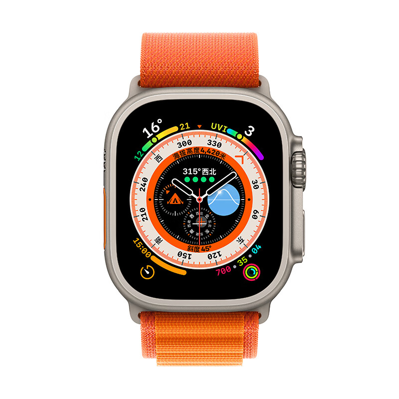 Apple/苹果 Watch Ultra 智能手表 GPS + 蜂窝款 49毫米 钛金属表壳橙色高山回环式表带小号MNHP3CH/A价格:5099.00元!