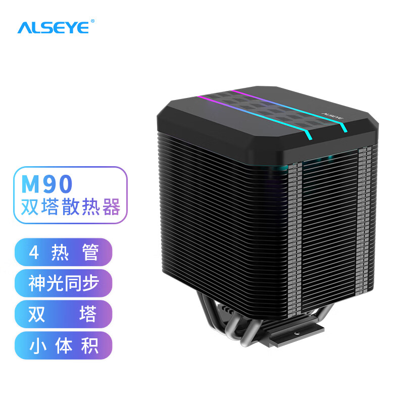 ALSEYE奥斯艾 风冷cpu散热器 M90-B 电脑组件 4热管双塔式双平台扣具 低躁音风扇ARGB 黑色价格:105.00元!