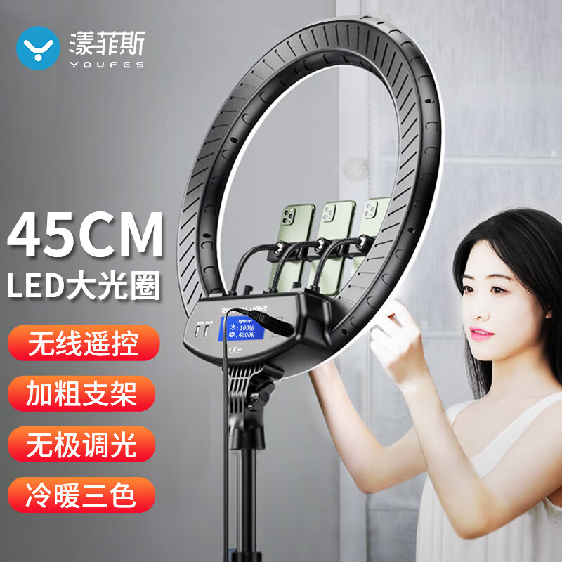漾菲斯YS6D环形led直播补光灯支架美颜嫩肤瘦脸大光圈摄影柔光灯网红主播短视频拍摄自拍打光拍照神器价格:298.00元!