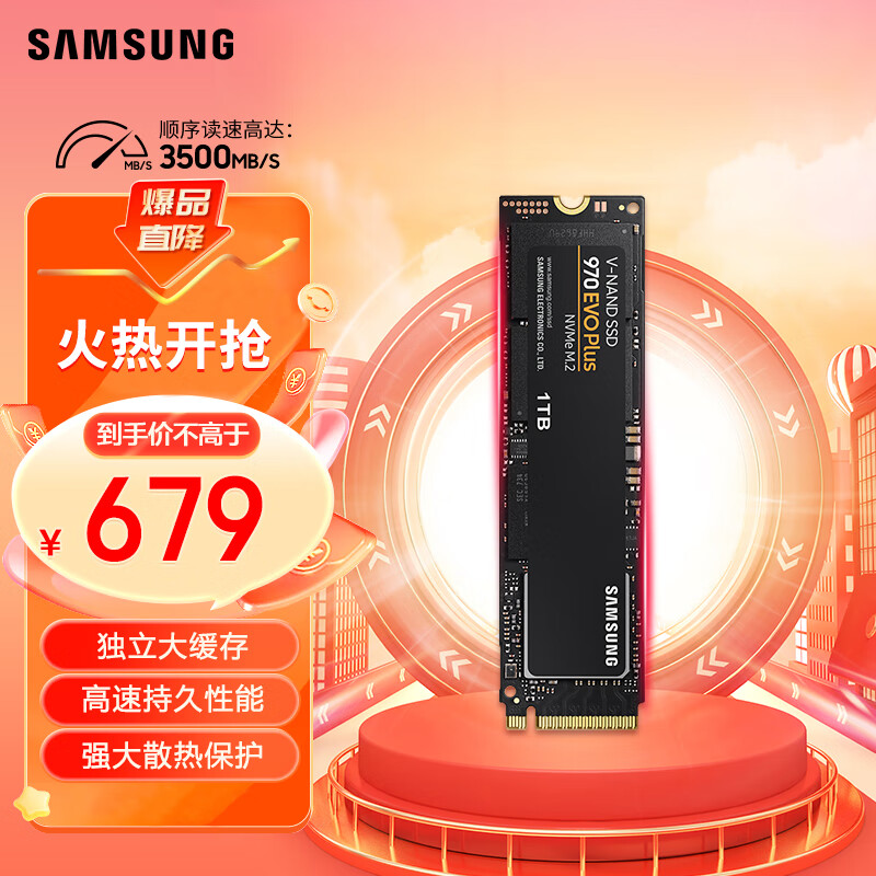 三星(SAMSUNG)1TB SSD固态硬盘 M.2接口(NVMe协议) 970 EVO Plus(MZ-V7S1T0B)价格:679.00元!