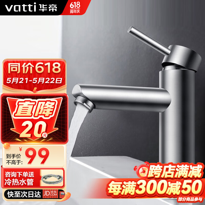 华帝(VATTI)304不锈钢拉丝工艺浴室水龙头 洗脸盆洗手盆冷热水龙头 041016价格:119.00元!