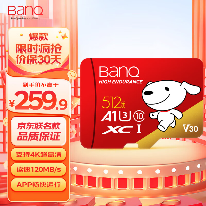 banq&JOY联名款 512GB TF(MicroSD)存储卡U3 C10 A1 V304K高速款行车记录仪&监控游戏机无人机内存卡价格:259.90元!
