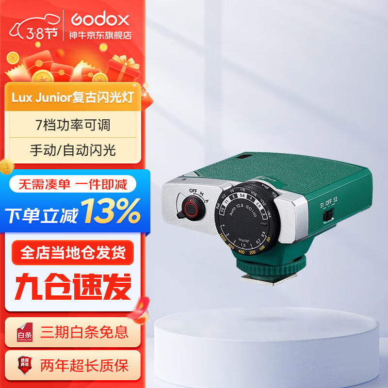 神牛(Godox) Lux Junior复古闪光灯相机单反微单摄影佳能索尼富士尼康外拍热靴机顶闪光灯 LuxJunior复古闪光灯墨黛绿 官方标配价格:399.00元!