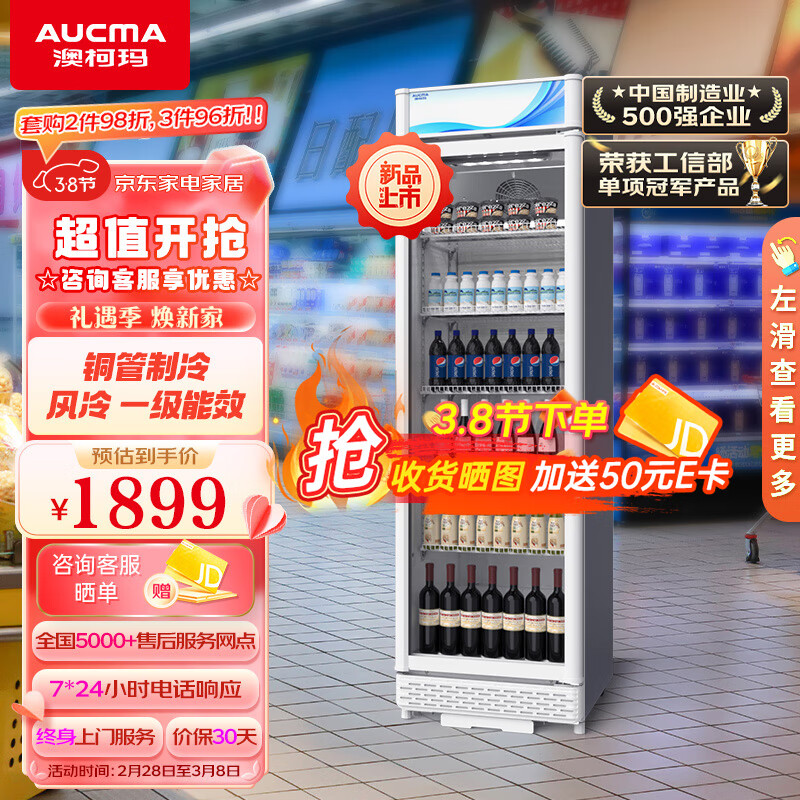澳柯玛(AUCMA)380升立式单门冷藏冰箱商用展示柜 超市饮料啤酒保鲜冷柜 冷饮茶叶陈列冰柜 风冷无霜 SC-380W价格:2199.00元!