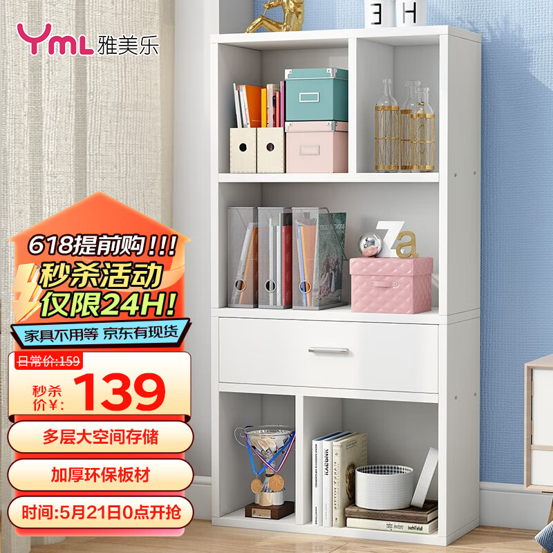 雅美乐书柜落地简易组合抽屉书架置物架客厅卧室阳台柜 四层白色价格:139.00元!