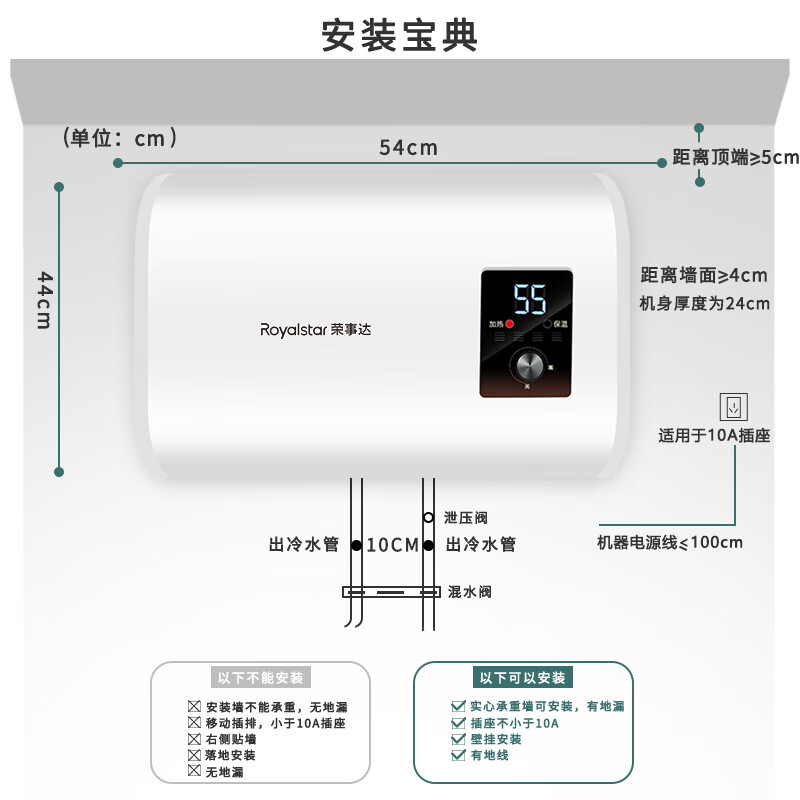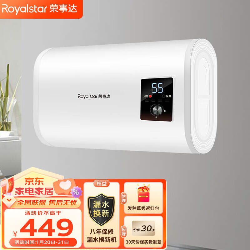 荣事达(Royalstar) 扁桶电热水器家用2000w双胆速热卫生间洗澡储水式热水器电 速热 经济适用 40L (1人)价格:448.00元!