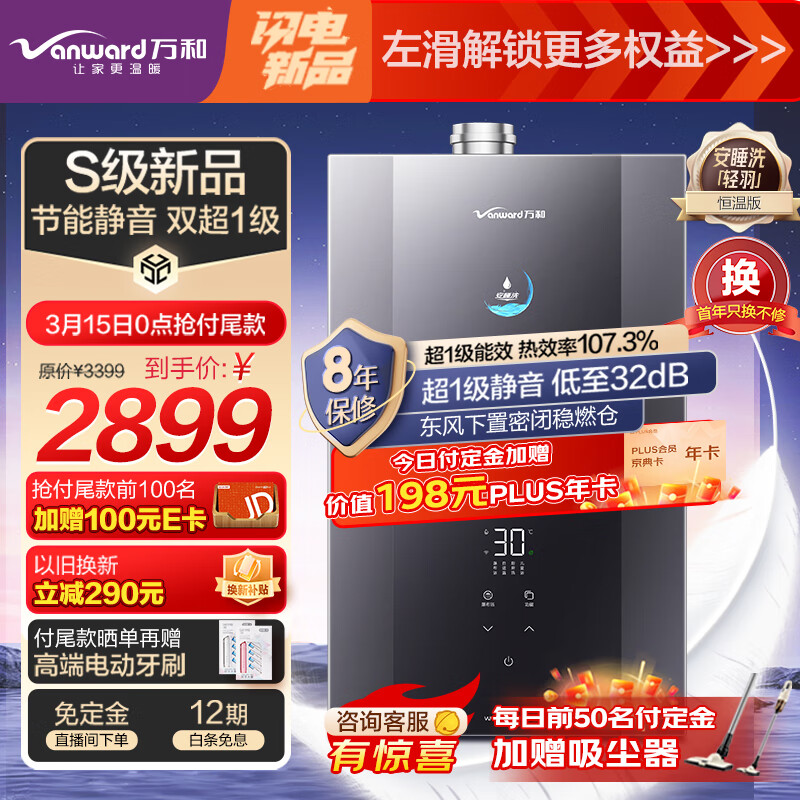 万和(Vanward)燃气热水器16升天然气 超一级静音 AI双伺服恒温 超一级能效 下置风机 安睡洗2.0 F9D PRO价格:3399.00元!