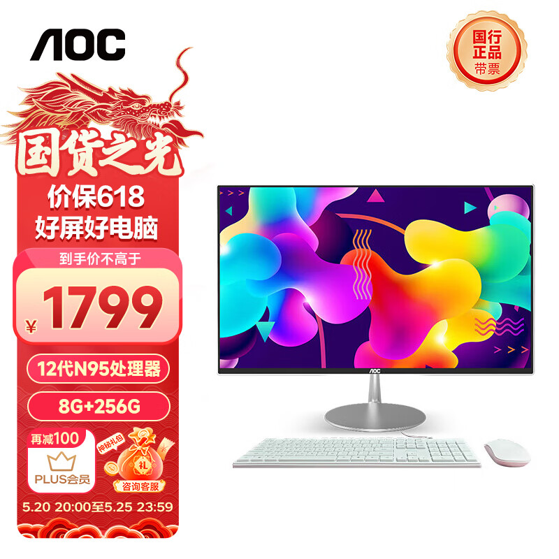 AOC美人鱼734 23.8英寸高清家用办公一体机电脑台式(12代N95 8G 256G 双频WiFi 商务键鼠 3年上门)白价格:1799.00元!