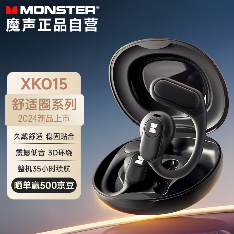 魔声(MONSTER)【柏林之声】无线蓝牙耳机挂耳式 开放式不入耳骨传导概念夹耳运动跑步降噪适用华为小米XKO15黑色价格:129.00元!