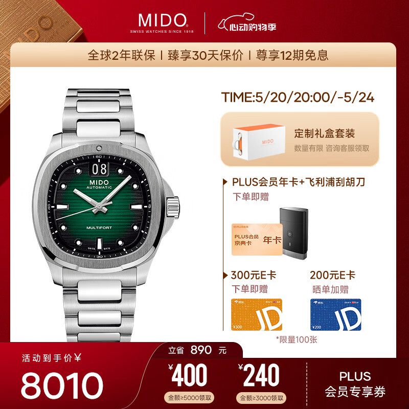 美度(MIDO)瑞士手表 舵手系列 大日历 TV款 商务休闲 自动机械钢带男表 任嘉伦同款 送男友价格:8010.00元!