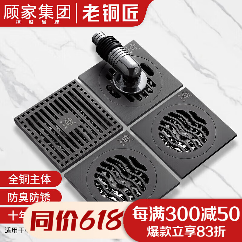 老铜匠顾家集团全铜防臭地漏淋浴房防反水超薄卫生间洗衣机厨卫地漏价格:257.94元!