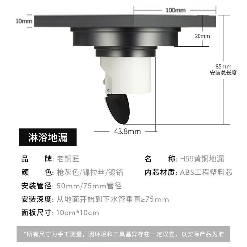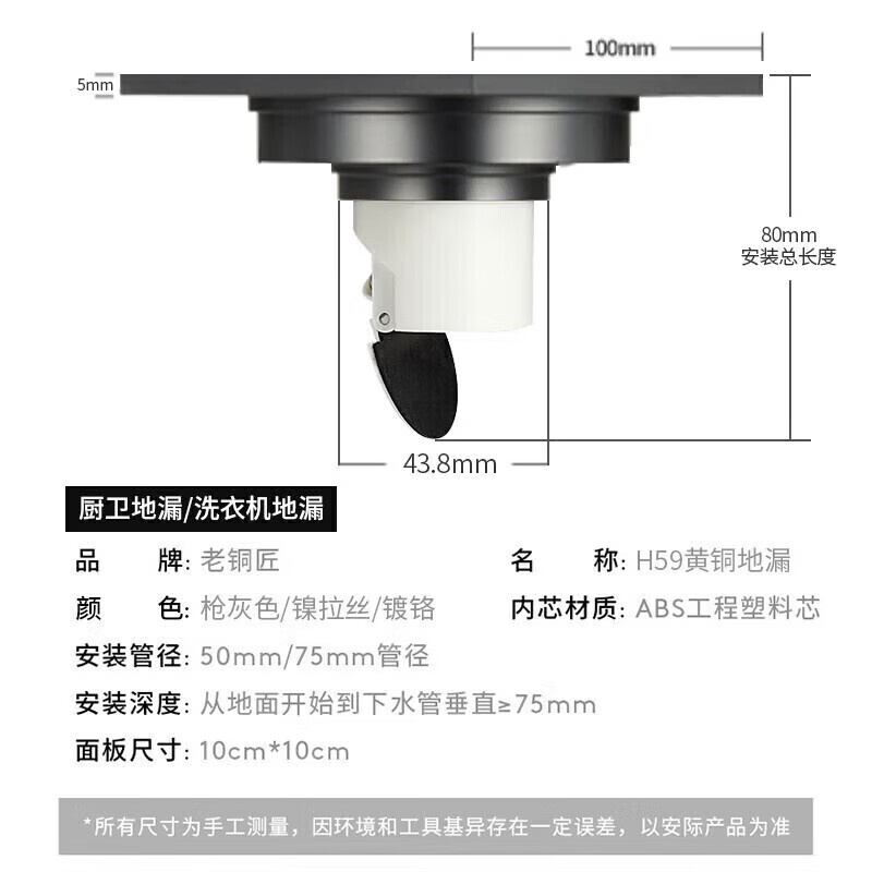 老铜匠淋浴地漏*1+厨卫地漏*2+洗衣机地漏*1配置参数: