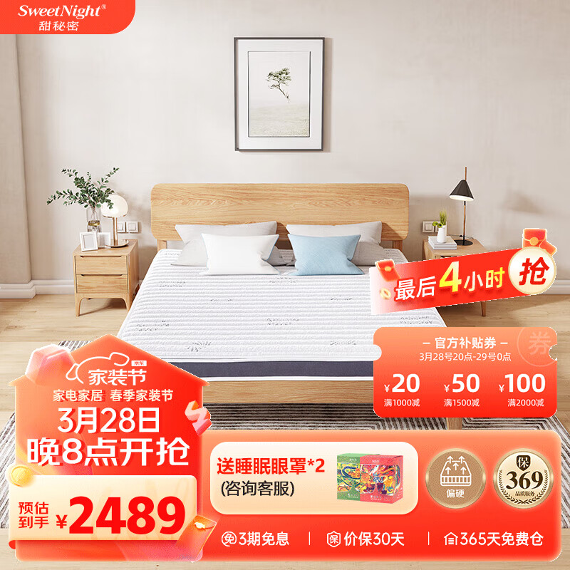 Sweetnight榻榻米床垫天然椰棕床垫10cm床垫子 可定制拆洗甜秘密可拉1.8x2米价格:2489.00元!