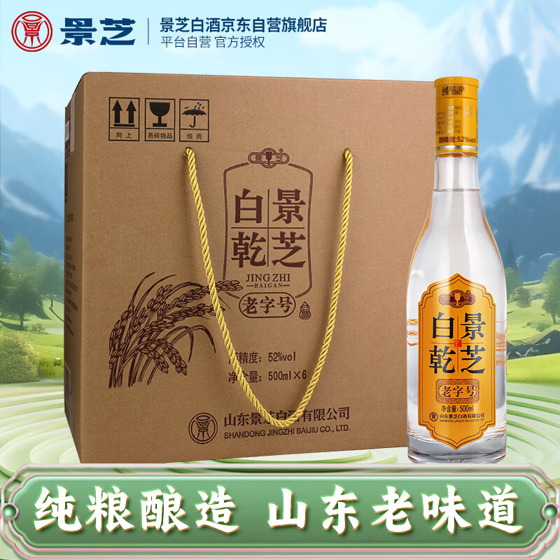 景芝 白乾老字号 高度白酒 52度500ml*6瓶 整箱装价格:180.00元!