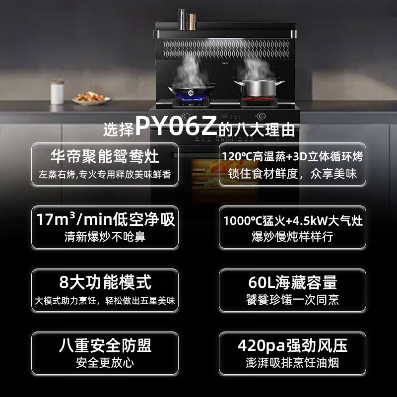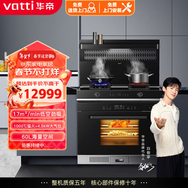 华帝(VATTI)集成灶蒸烤一体 集成一体灶 17m3/min超大吸力 4.5kW+3.5kW鸳鸯灶 烟灶套装 PY06Z天然气价格:12999.00元!