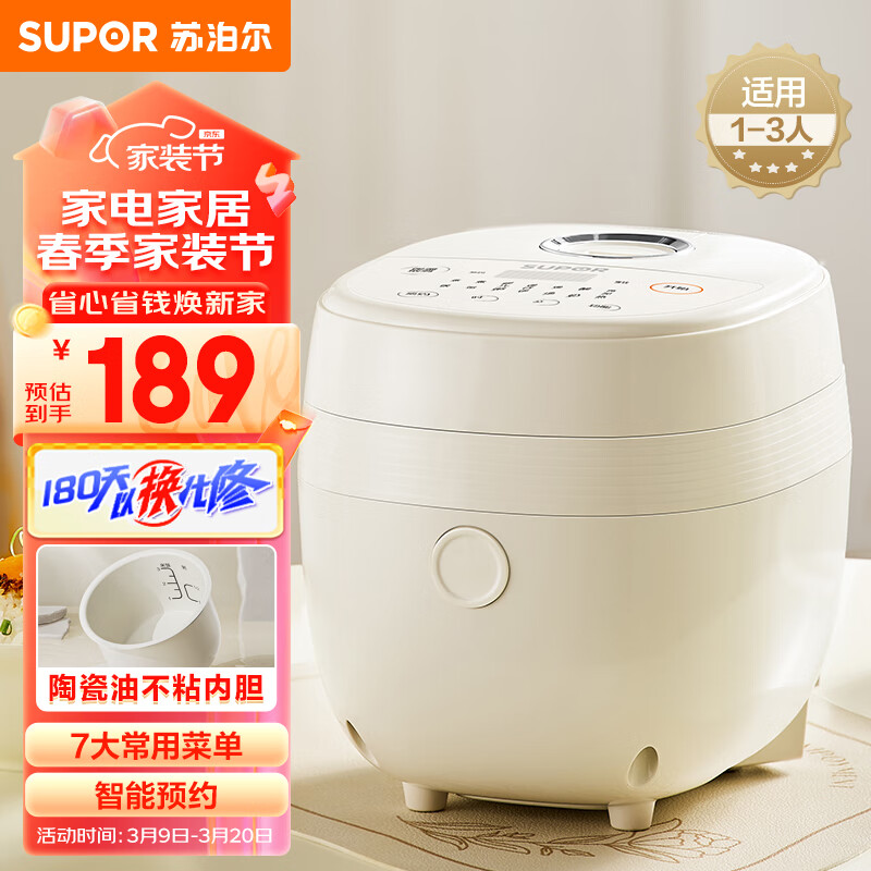 苏泊尔(SUPOR)电饭煲 电饭锅 1.6L精致容量 家用多功能 陶瓷油不粘内胆 微压破泡 SF16FC913价格:189.00元!