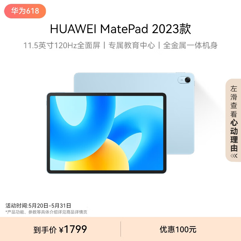 HUAWEI MatePad 2023款标准版华为平板电脑11.5英寸120Hz护眼屏学生学习娱乐平板8+256GB 海岛蓝价格:1799.00元!
