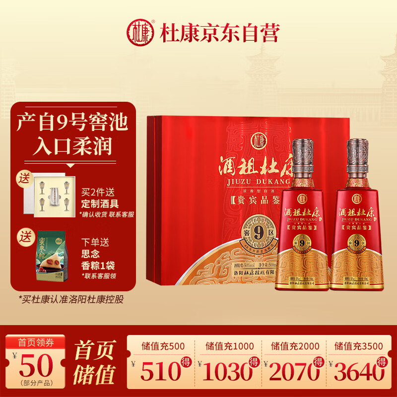 杜康9窖区贵宾品鉴浓香型白酒50度500ml*2瓶礼盒装【宴席送礼自饮】价格:359.00元!