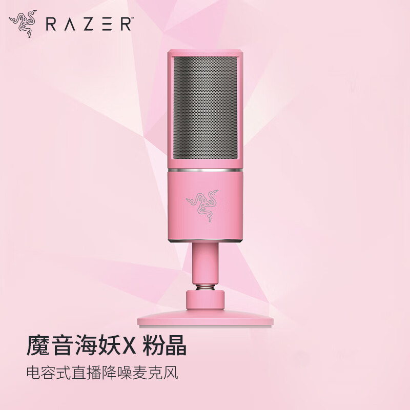 雷蛇(Razer)魔音海妖 X 电容式直播降噪麦克风 桌面电脑K歌 主播推荐 专业录音话筒 粉晶价格:399.00元!