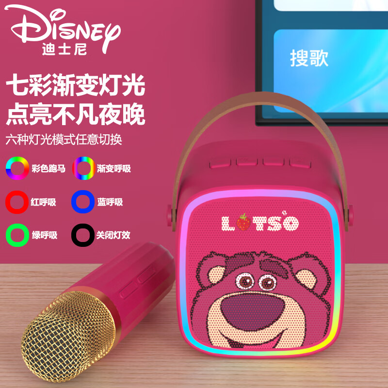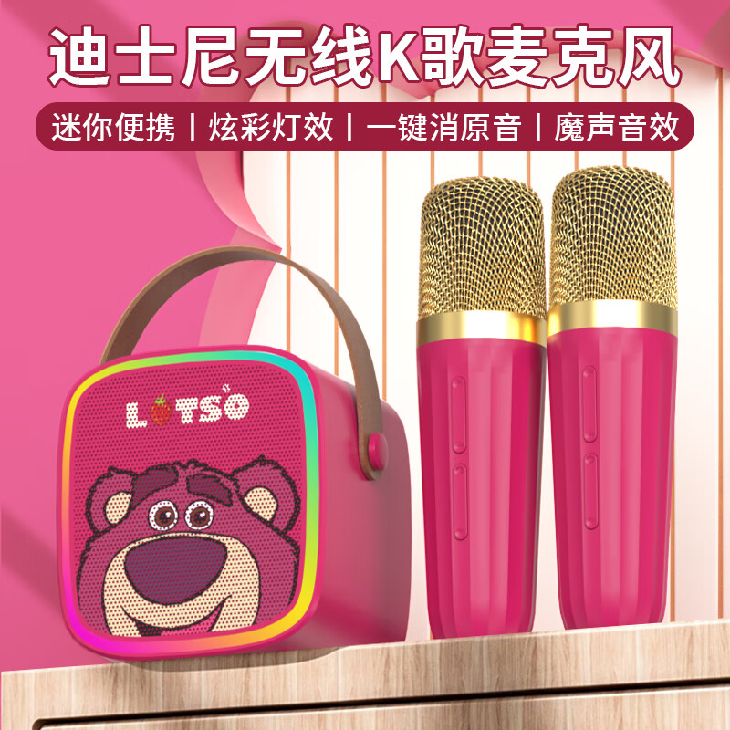 迪士尼(DISNEY)话筒音响一体麦克风k歌音箱带声卡无线蓝牙手机直播六一儿童节生日礼物家庭ktv音响套装MK02草莓熊价格:159.00元!
