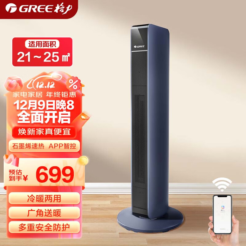 格力(GREE)【石墨烯速热】取暖器电暖器电暖气片家用冷暖热风机WIFI互联塔式暖风机 NTFG-X6022B价格:699.00元!
