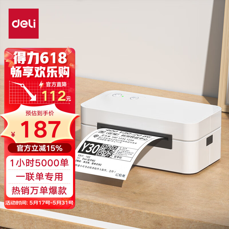 得力(deli)GE435快递打印机 一联单面单热敏打印机 80mm仓储物流商用办公打单不干胶条码标签打印机 电脑版价格:219.00元!