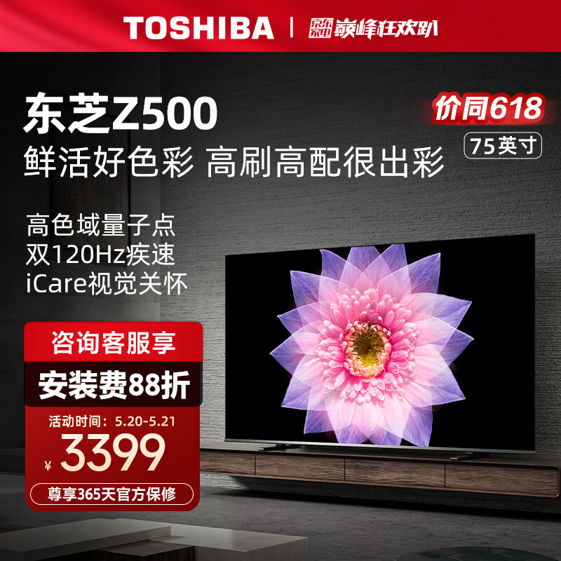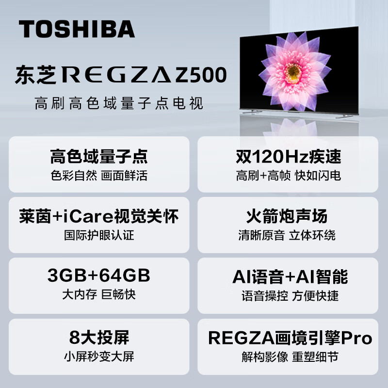 东芝电视75Z500MF 75英寸 120Hz高刷高色域 量子点 3+64GB 4K高清 液晶智能平板游戏电视机 品牌前十名价格:3499.00元!