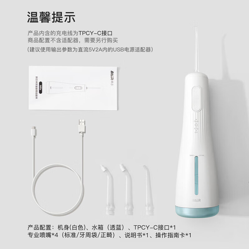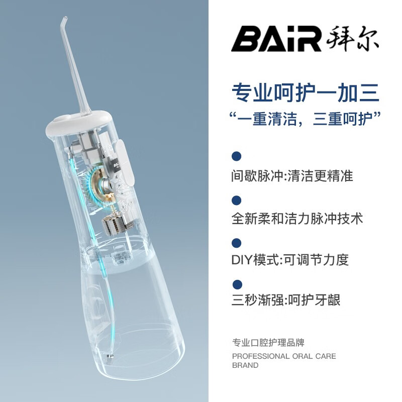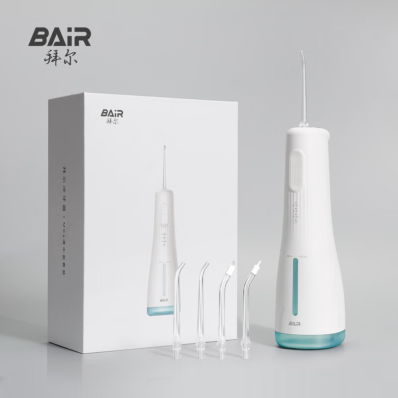 拜尔(BAIR)M6s电动冲牙器家用式便携 清洁口腔洗牙器水牙线冲洗器洁牙器牙套清洗充压 男送女朋友礼物实用 清水蓝丨力度自由调节 4支喷头价格:266.00元!