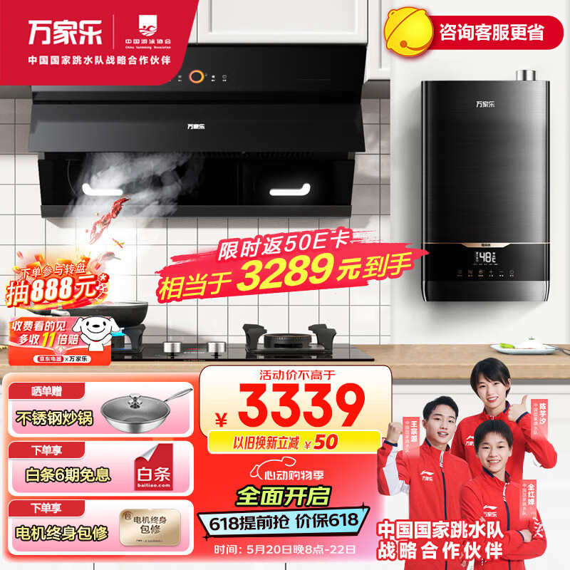 万家乐 抽油烟机 烟灶热三件套 22m3/min挥手自清洗油烟机燃气灶热水器套装AL061+KV061B+16LDLU3天然气价格:3539.00元!