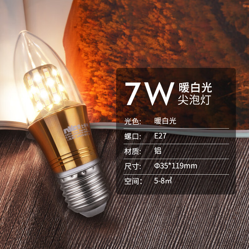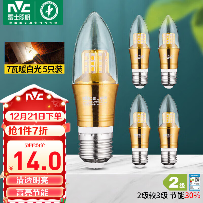雷士(NVC) LED灯泡尖泡 7瓦E27大螺口 光源节能灯 暖白光4000K 5只价格:100.00元!