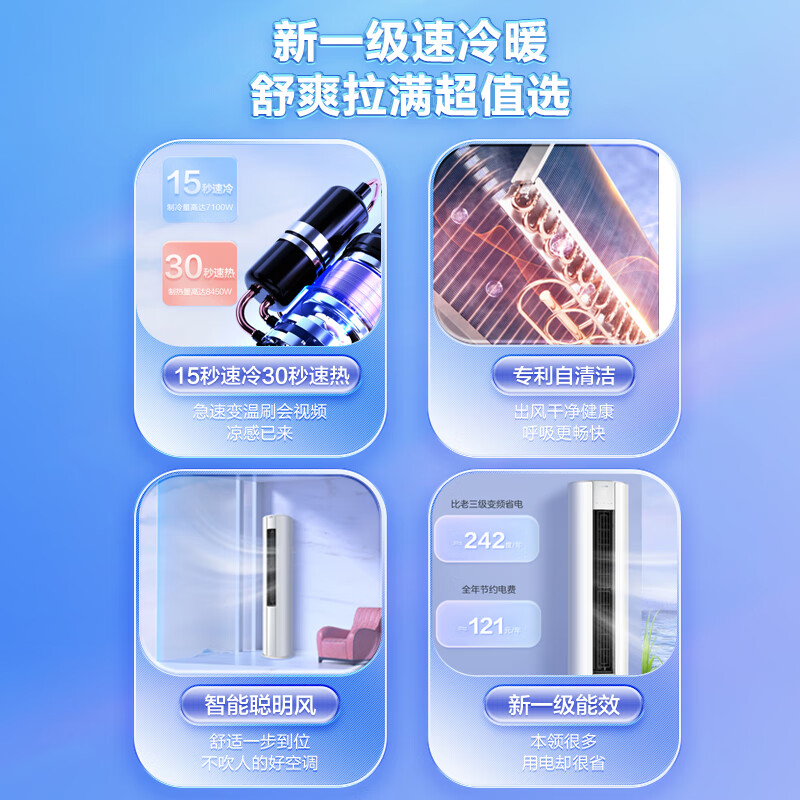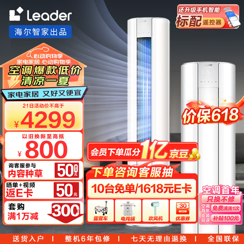 Leader空调 海尔智家出品 2匹新一级变频 客厅空调柜机 自清洁空调立式KFR-50LW/02WDB81TU1以旧换新价格:4299.00元!