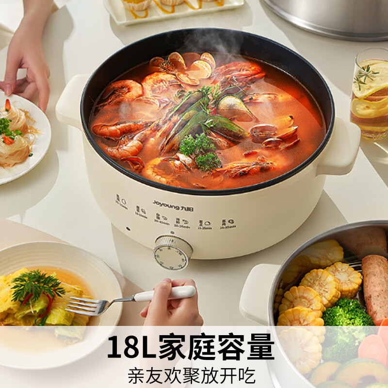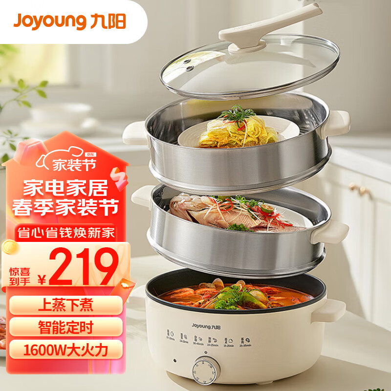 九阳(Joyoung)大容量1600W大功率多用途锅多功能家用电火锅电煮锅电热锅电蒸锅DZ180HG-GZ180价格:219.00元!