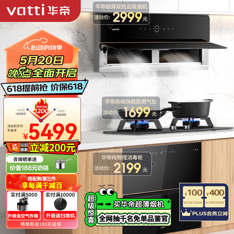 华帝(VATTI)抽油烟机理想家X6变频超薄近吸双腔25风量油烟机灶具消毒柜套装 i11210+76B+3040(天然气)价格:6399.00元!