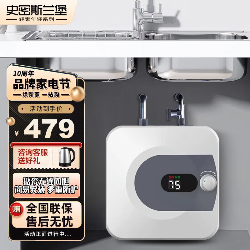 史密斯兰堡电热水器储水式小厨宝家用10升1600W上出水台下式卫生间旋钮数显款暖水宝【自行安装】 BLJ-A10价格:419.00元!