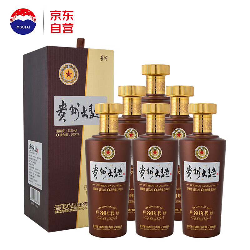 茅台(MOUTAI) 贵州大曲酒 大曲80年代 酱香型白酒 53度 500ml*6瓶 整箱装价格:1248.00元!