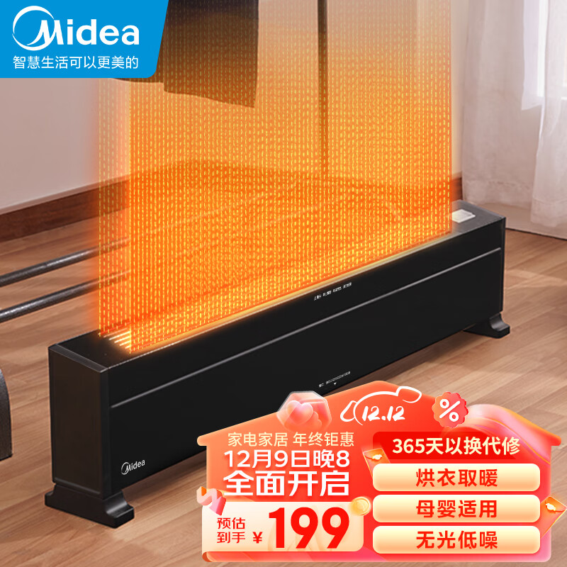 美的(Midea)“黑骑士”取暖器 电暖器 电暖气片家用 移动地暖 节能轻音 浴室取暖 电热踢脚线取暖器HDX22K价格:269.00元!