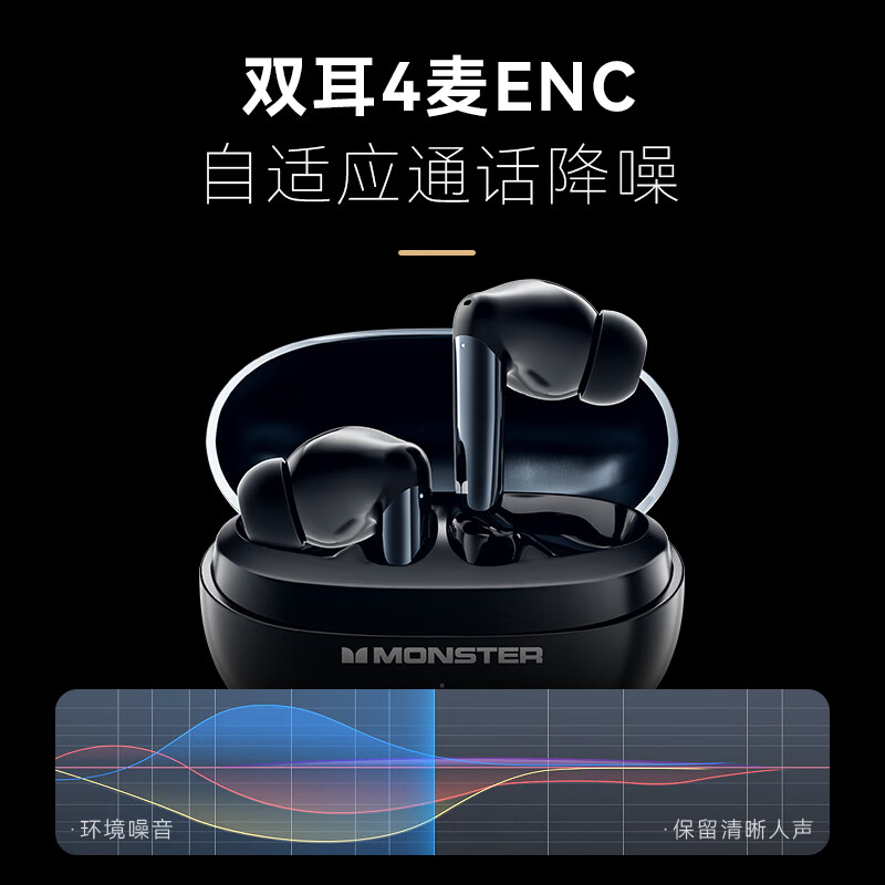 魔声(MONSTER)无线耳机入耳式ANC主动降噪运动跑步音乐游戏无线监听设备直播配件音乐耳机 GT12 pro定制款黑色价格:219.00元!