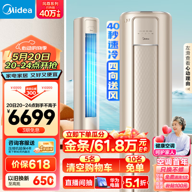 美的(Midea)空调 3匹 风尊 新一级能效 变频冷暖 独立除湿 客厅空调立式 空调柜机 智能家电KFR-72LW/N8MZB1价格:6549.00元!