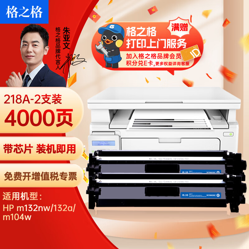 格之格cf218a硒鼓 适用惠普m132nw硒鼓 m132snw m132fn m104a m104w打印机墨盒 惠普m132a硒鼓带芯片双支装价格:132.00元!