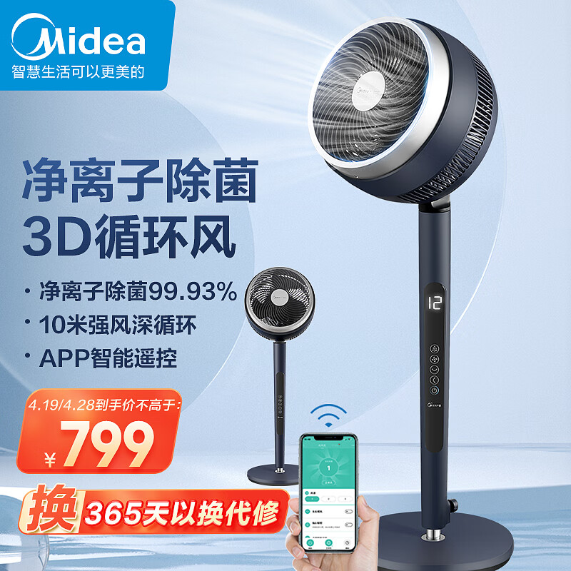 美的(Midea)净离子除菌空气循环扇WiFi智控3D全自动摇头电风扇轻音宿舍低噪落地扇语音联动四季风扇FGD24WDJ价格:799.00元!