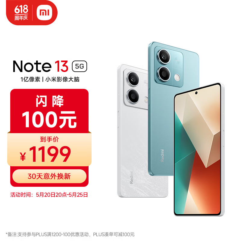 小米Redmi Note13 5G 1亿像素 超细四窄边OLED直屏 8GB+256GB 时光蓝 SU7 5G手机价格:1199.00元!