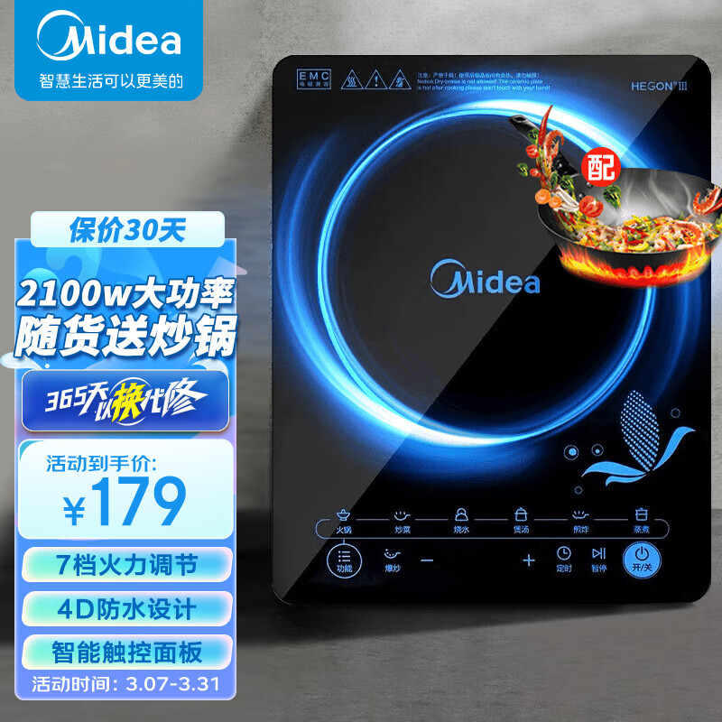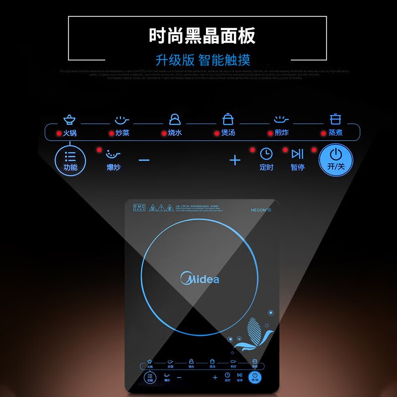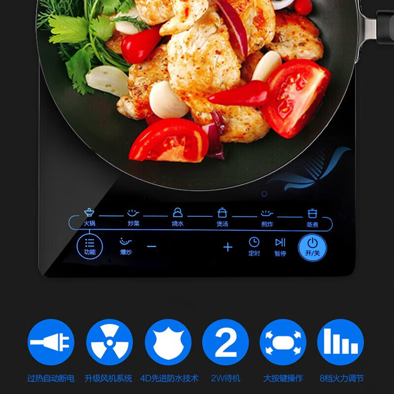 美的(Midea) 电磁炉大功率家用 防水面板2200W大功率 炒菜火锅不粘炒锅一体小型电磁灶 【2100W功率丨配炒锅*1】SN2105T 电磁炉价格:209.00元!