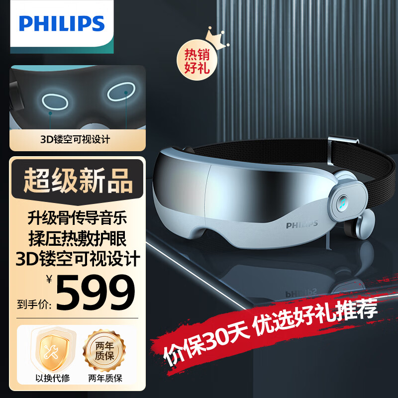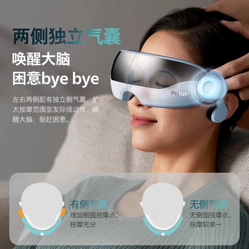 飞利浦(PHILIPS)眼部按摩仪 睡眠眼罩按摩器热敷护眼仪 升级双层气囊眼周按摩蓝牙骨传导音效揉按 7102E 浅蓝色价格:679.00元!