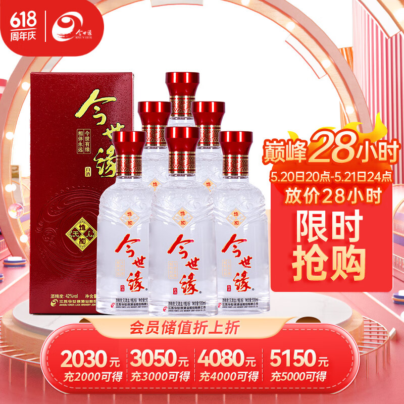 今世缘地和 42度 500ml*6瓶整箱装 幽雅醇厚型 浓香型 白酒 喜酒聚餐价格:220.00元!