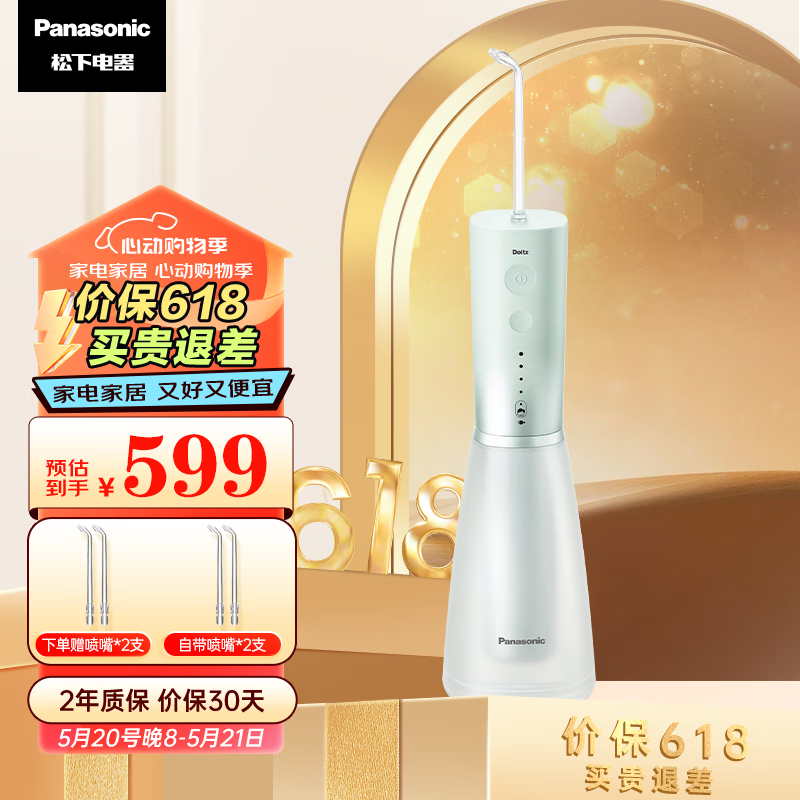 松下(Panasonic)冲牙器洗牙器水牙线 超声波洁牙器立式便携 自带儿童模式正畸生日礼物送男友送女友EW-1523-G绿色价格:699.00元!