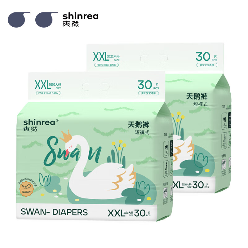 爽然(shinrea)天鹅系列拉拉裤XXL60片超薄男女通用婴儿尿不湿价格:100.00元!